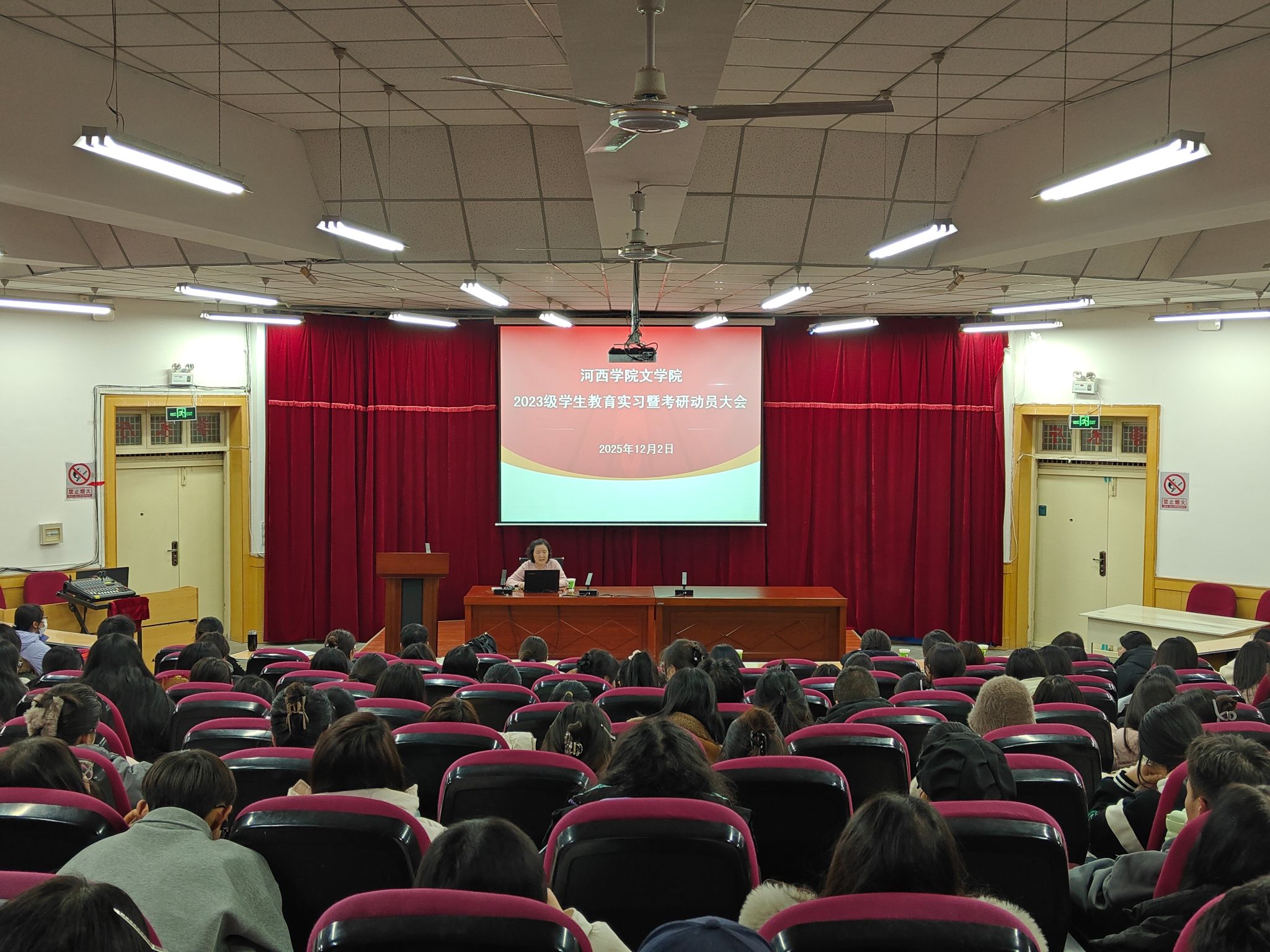 12月2日晚,文学院在三教学术二厅召开2023级学生教育实习暨考研动员大会,学院领导、杰出校友、教师代表、2023级班主任及全体学生参会。