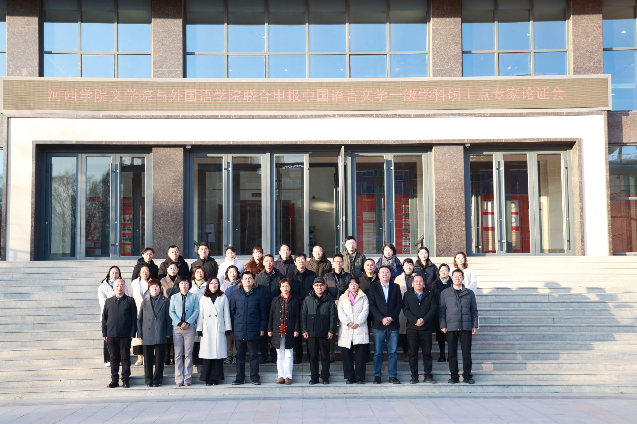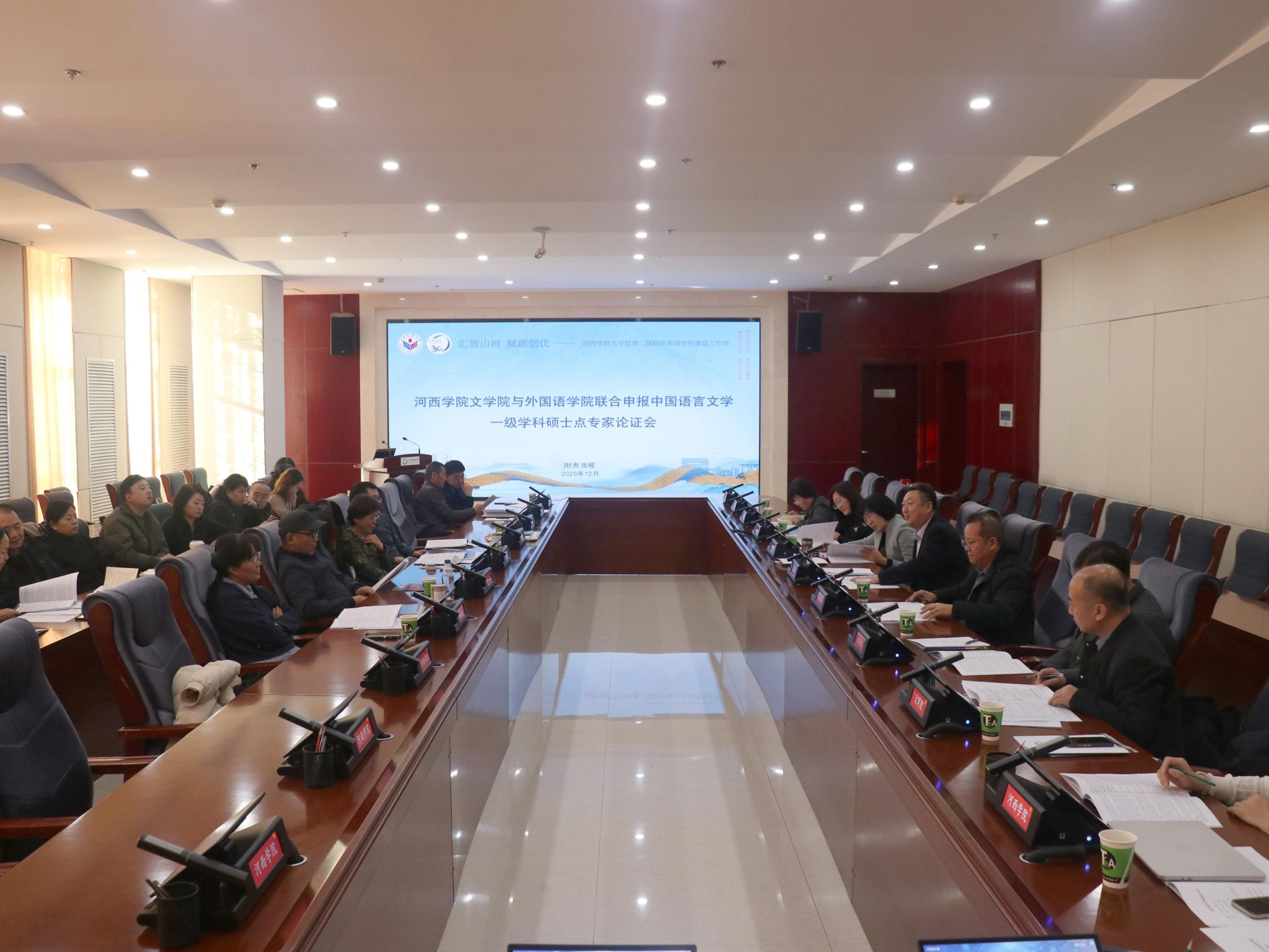 12月7日上午,学院与外国语学院联合申报中国语言文学一级学科硕士点专家论证会在河西讲堂一号会议室顺利举行。
