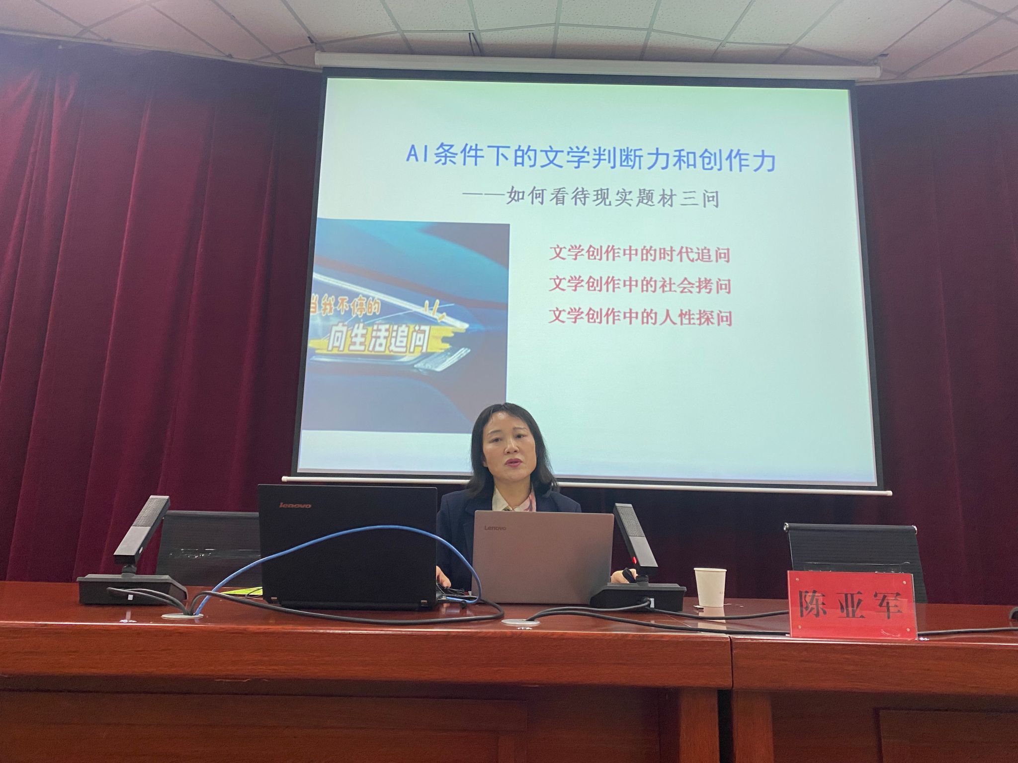为扎实推进学校与张掖市校地合作相关事项落地落实,2026年3月4日下午,文学院与张掖市联合举办学术报告会。报告会特邀《民族文学》主编、一级文学创作者陈亚军莅临河西学院,以《AI条件下的文学判断力和创作力——如何看待现实题材三问》为题,为文学院师生及张掖市文联及其各协会代表200余人作专题报告。