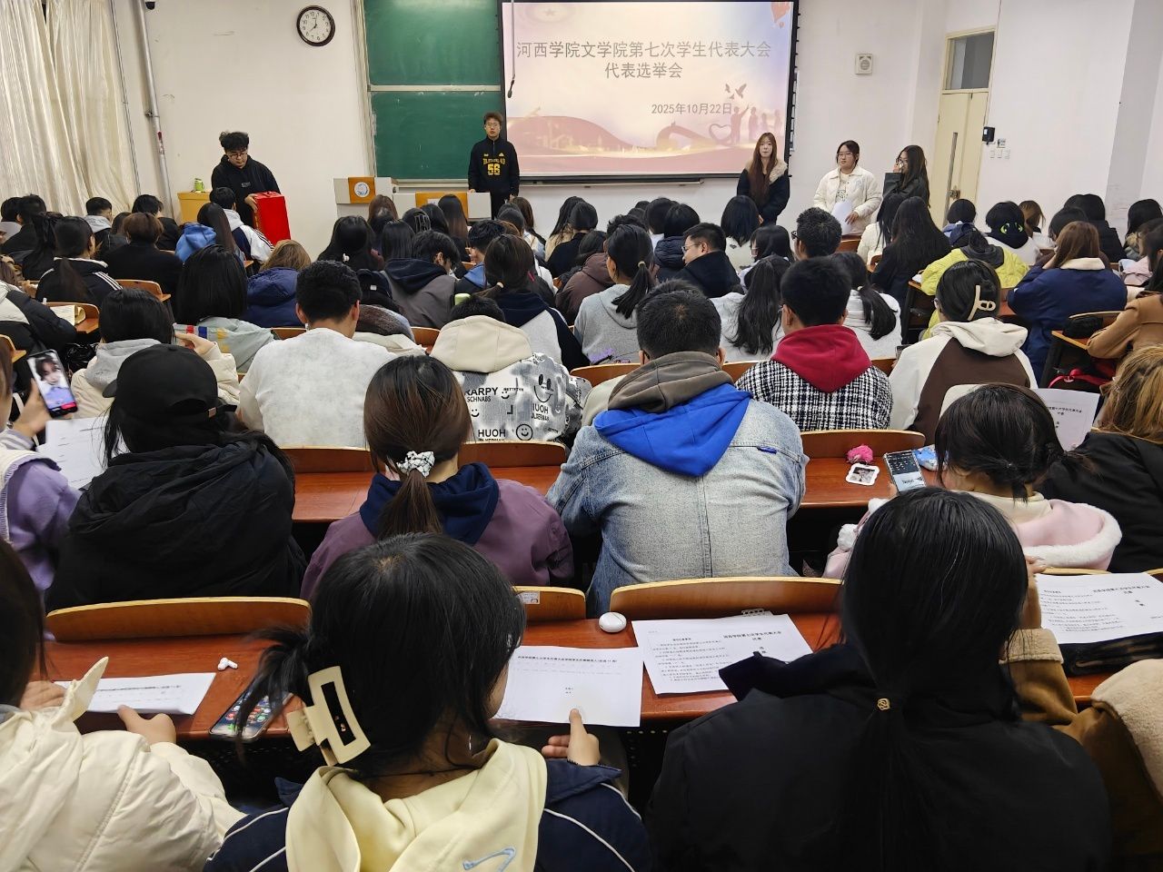 2025年10月22日,学院第七次学生代表大会代表选举大会召开,会议由学院辅导员杲靖老师主持,选举工作严格遵循《河西学院第七次学生代表大会代表选举办法》(草案)及规范流程推进。 大会伊始,由纪检部负责人唐栩菲清点并向主持人报告参会人数,确认符合“参加选举代表超过应到会五分之四”的选举要求。随后,表决通过《河西学院第七次学生代表大会代表选举办法》(草案),以及监票人马占才、计票人郭小露、方蓓蓓、郭桐的名单。 选举环节中,...